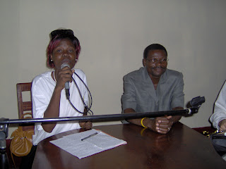 On Sunday afternoon we visited the Bangui Christian radio station that is adjacent to the Castor church, and Clarissa (left) and Emmanuel (not in photo), participants in our writers’ seminar who are radio station staff, conducted a wide-ranging hour-long interview with all the instructors. We discussed literature in Africa, principles of good communication, the effect of the Internet on printed publications and much more in the interview, which will be broadcast a number of times over the station in the future.