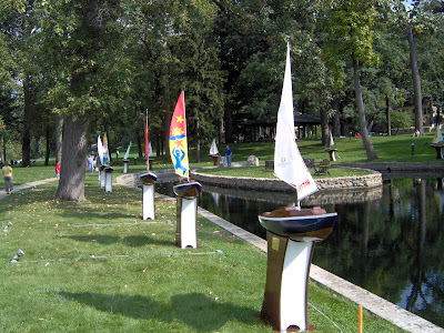 On display around the swan pond across from the Rodeheaver Auditorium were a series of model sailboats with hand-painted sails. The sails are painted by local and well-known artists and the boats are a fund raiser for the recently-founded Symphony of the Lakes, a 55-piece orchestra founded and directed by Dr. Patrick Kavanaugh, who is also head of the Grace College music department.