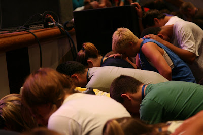At the end of the opening session, students streamed toward the front to kneel before God.