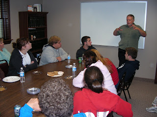 Students enrolled in the 412 Commission classes visited the offices of the Brethren Missionary Herald Company (BMH) and the Fellowship of Grace Brethren Churches (FGBC) today (Monday) for lunch. After lunch, BMH staffers Jesse Deloe (senior editor), Ann Swartz Myers (operations manager), and Liz Cutler Gates (editorial director) explained the ministries of BMH and Tom Avey, fellowship coordinator, talked about the FGBC (above).
