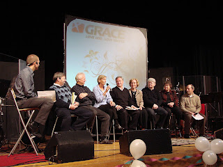 From October 12 to November 2, Grace Community Church, a Grace Brethren church in Mississauga, Ontario, is celebrating its 10th anniversary. In the photo above, from the October 19 service, Elise Adomanis shares memories from the early years of the church. Grace Community Church is the result of the dreams and prayers of many in the U.S. to see a Grace Brethren work in Canada. Sponsored by Grace Brethren Home Missions, Team Canada (comprised of Phil and Beth Bryant, Nathan Bryant, and Bartley and Sarah Sawatsky), moved to the Toronto area in the mid-1990s with the goal of beginning the development of Grace Brethren congregations across the country. They aggressively pursued contacts, using visiting teams from the U.S. to make their presence known in the Meadowvale area of the city.