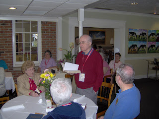 Dr. Homer A. Kent, Jr. (standing), former president and professor emeritus of New Testament and Greek at Grace College and Seminary, Winona Lake, Indiana, spoke Sunday morning as the Grace Creation Tour group gathered in the Netherlands Inn in Strasburg, Pa, prior to leaving to return to Winona Lake.