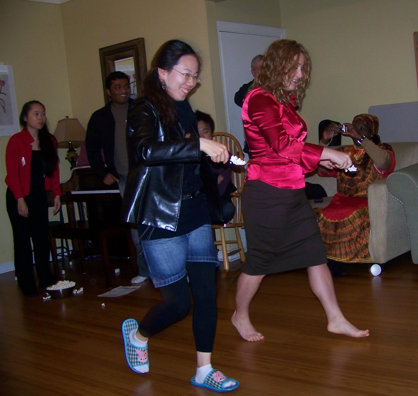 In the photo above, two students (from different continents) participate in the popcorn race.