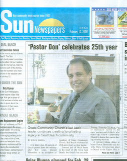 Don Shoemaker, pastor of Grace Community Church, a Grace Brethren church in Seal Beach, was featured on the front page of the Seal Beach Sun on February 12. He is celebrating his 25th year as pastor of the church.